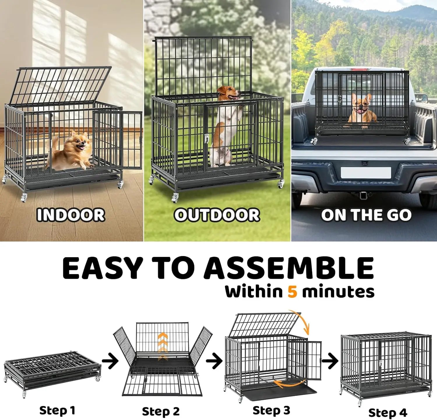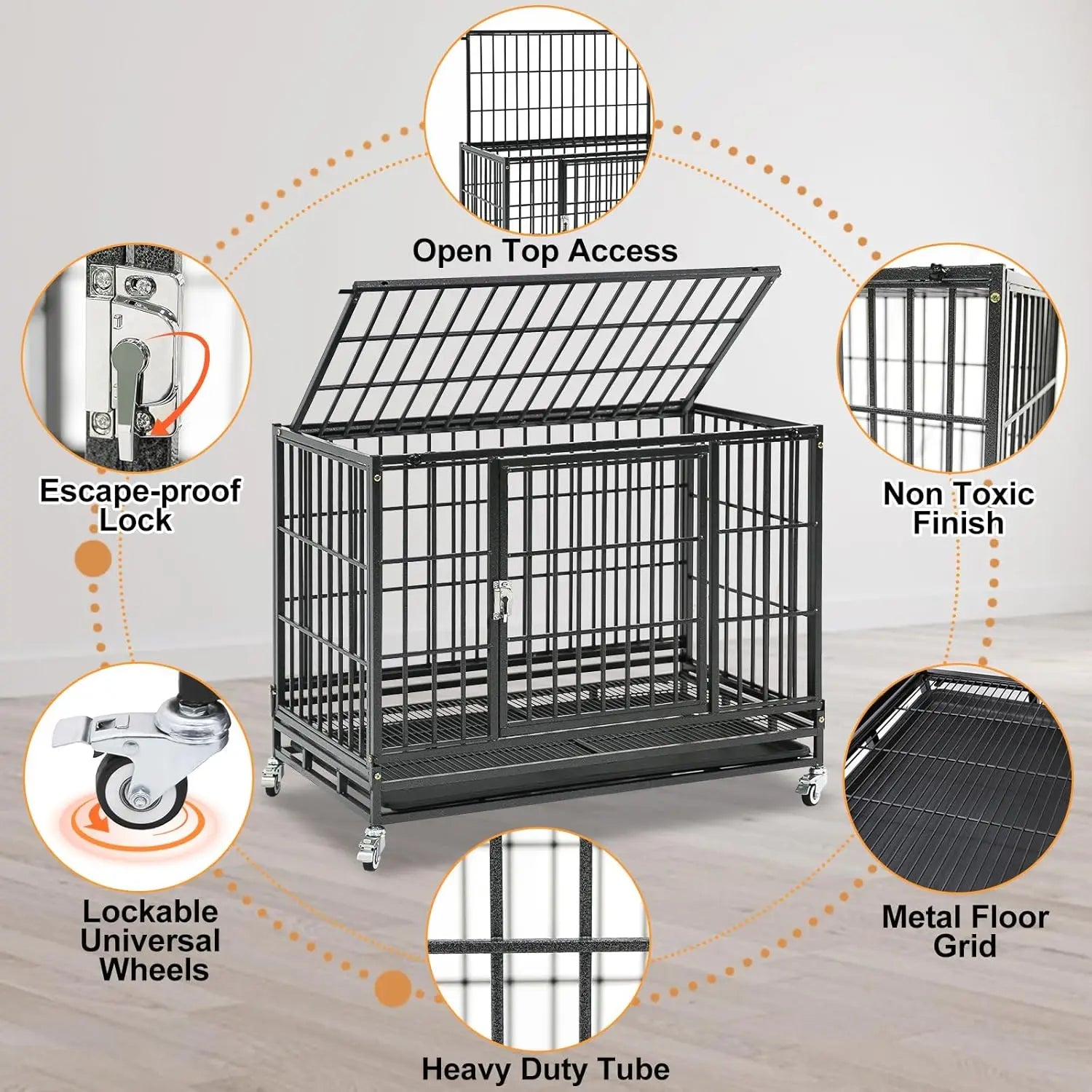 37 inch Stackable Heavy Duty Dog Crate-Indestructible- Escape Proof- Dogs Cage Kennel with Lockable Wheels