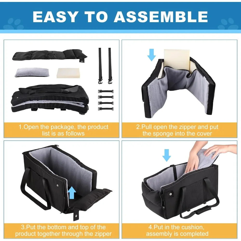 Center Console Dog Car Seat for Small Dogs Up to 12 lbs- Detachable Armrest Pet Seat with Adjustable Straps