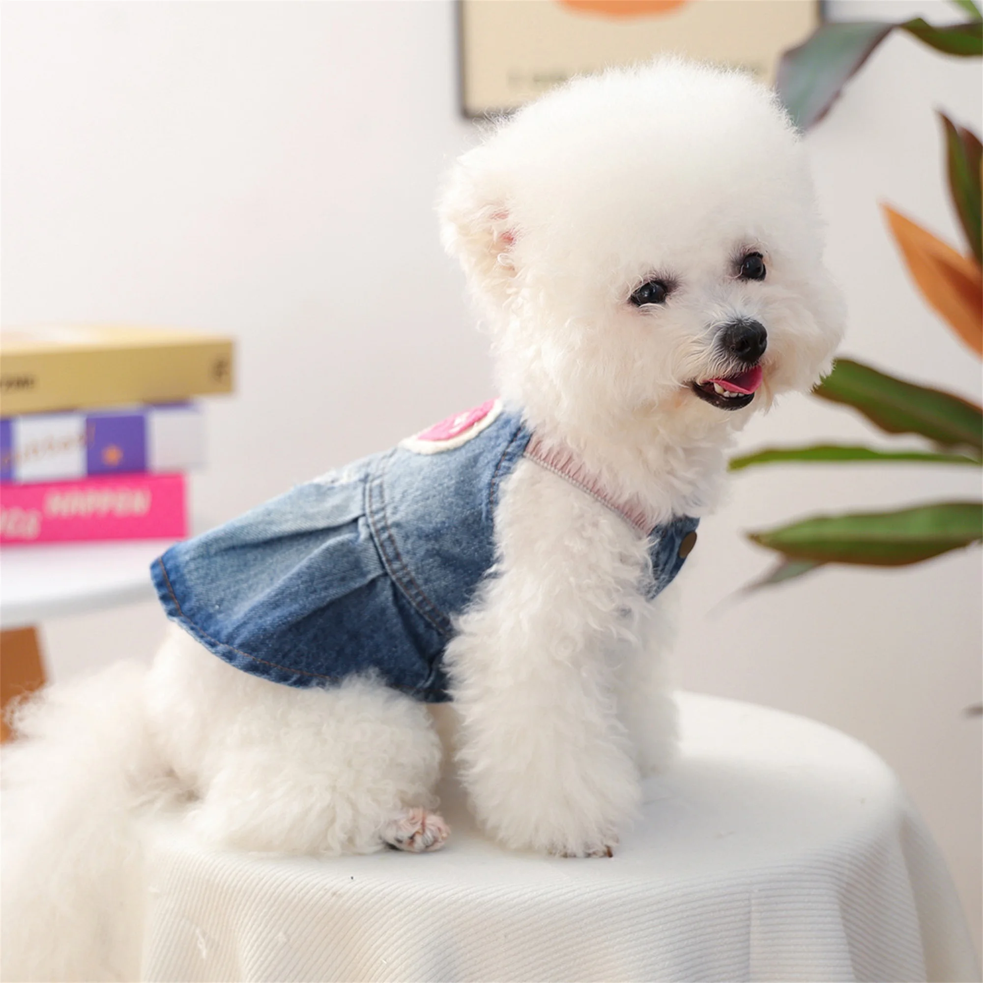 Dog Denim Dress -Cute Heart Patch Pet Dress -Small Medium Dog Outfit for Chihuahua, Yorkie, Bichon Frise.
