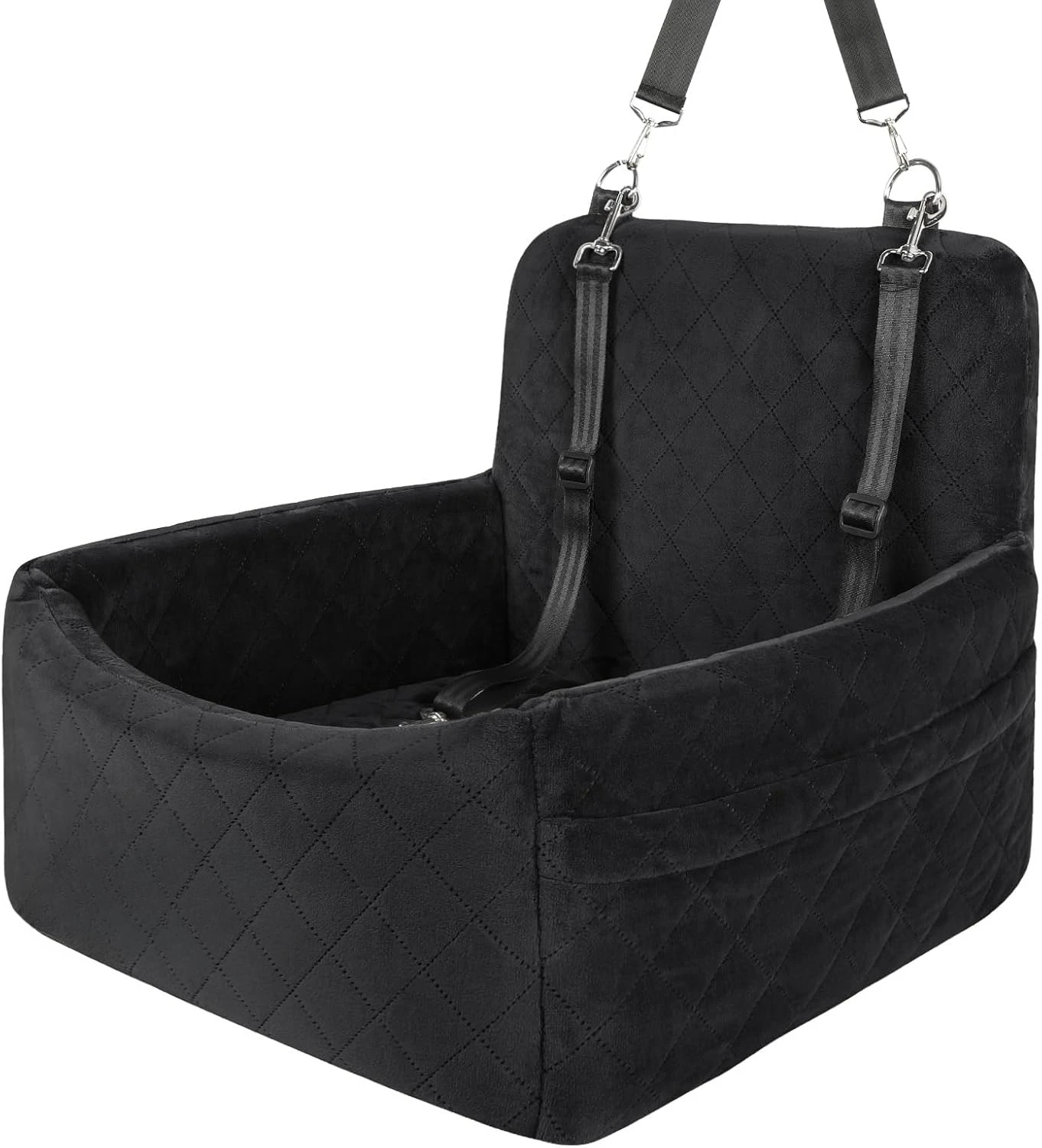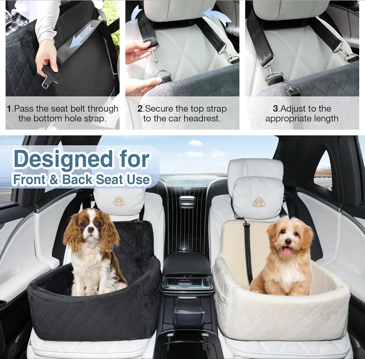Dog Car Seat for Small Dogs Under 25 lbs, Washable Pet Travel Bed with Memory Foam, Detachable Cover, Storage Pockets.