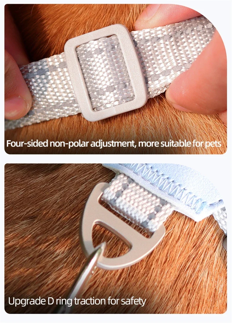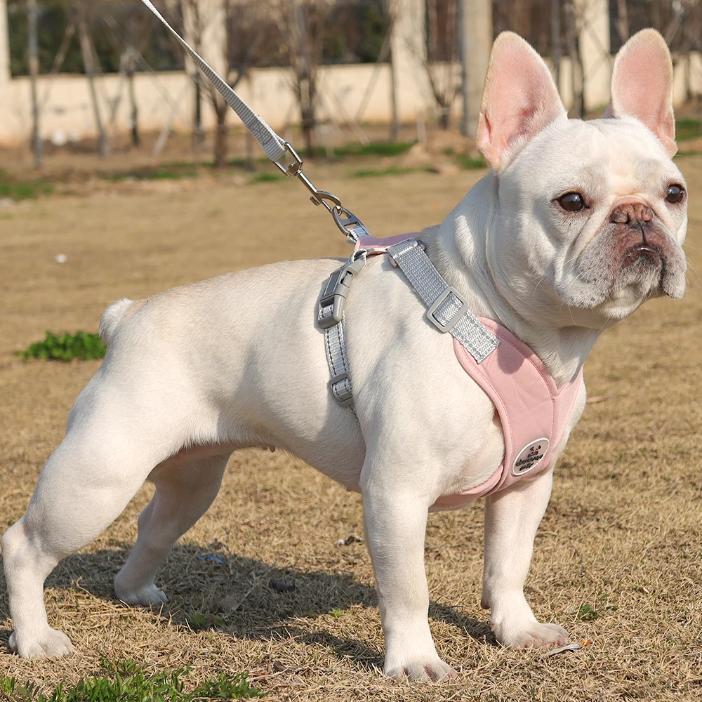 Dog Harness Leash Set Breathable Pet Chest Strap Reflective French Bulldog Vest Harness for Small Medium Dogs Collar Chihuahua Puppy Pet Walking Supllies