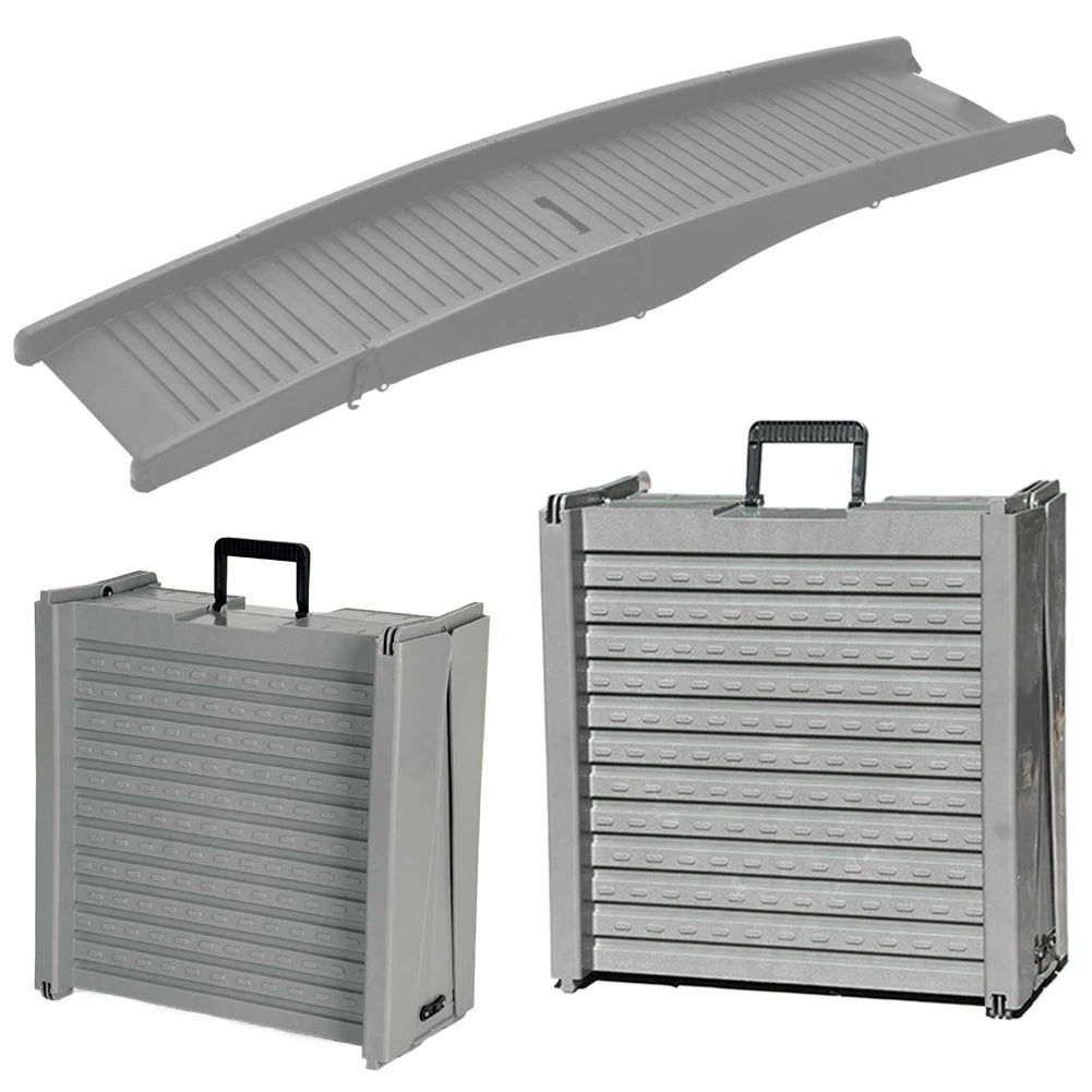 4. Foldable with Handle: The foldable car ramp for dogs easily folds into four sections, with a folded size of 42x41x20cm / 16.53x16.14x7.87in. This compact design allows you to conveniently store it in your vehicle or under beds and sofas, without taking up much space. It's suitable for people of all ages to carry and place.