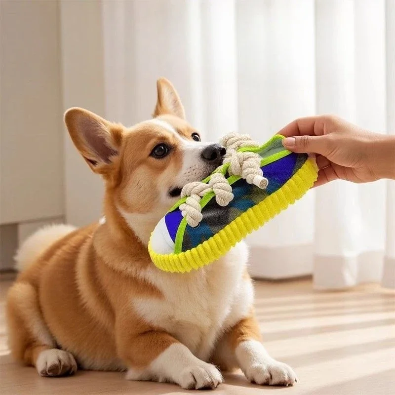 Dog Squeak Toy- Teeth Grinding- Bite Resistant Slippers Shape- Puppy Chew Toy With Cotton Rope-Dog Toys