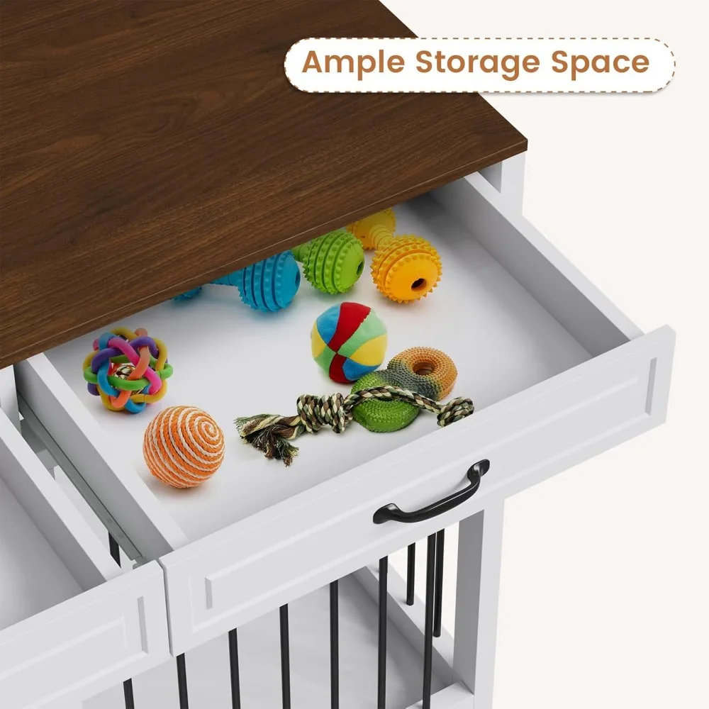 - 4 Large Drawers: The wooden dog cage furniture is designed with 4 large drawers for extra storage, which is great for storing dog leash, snacks, medicine and other sundries. The spacious desktop can support up to 150LB, stable enough to accommodate your TV, photo albums, potted plants, books, magazines and other supplies.