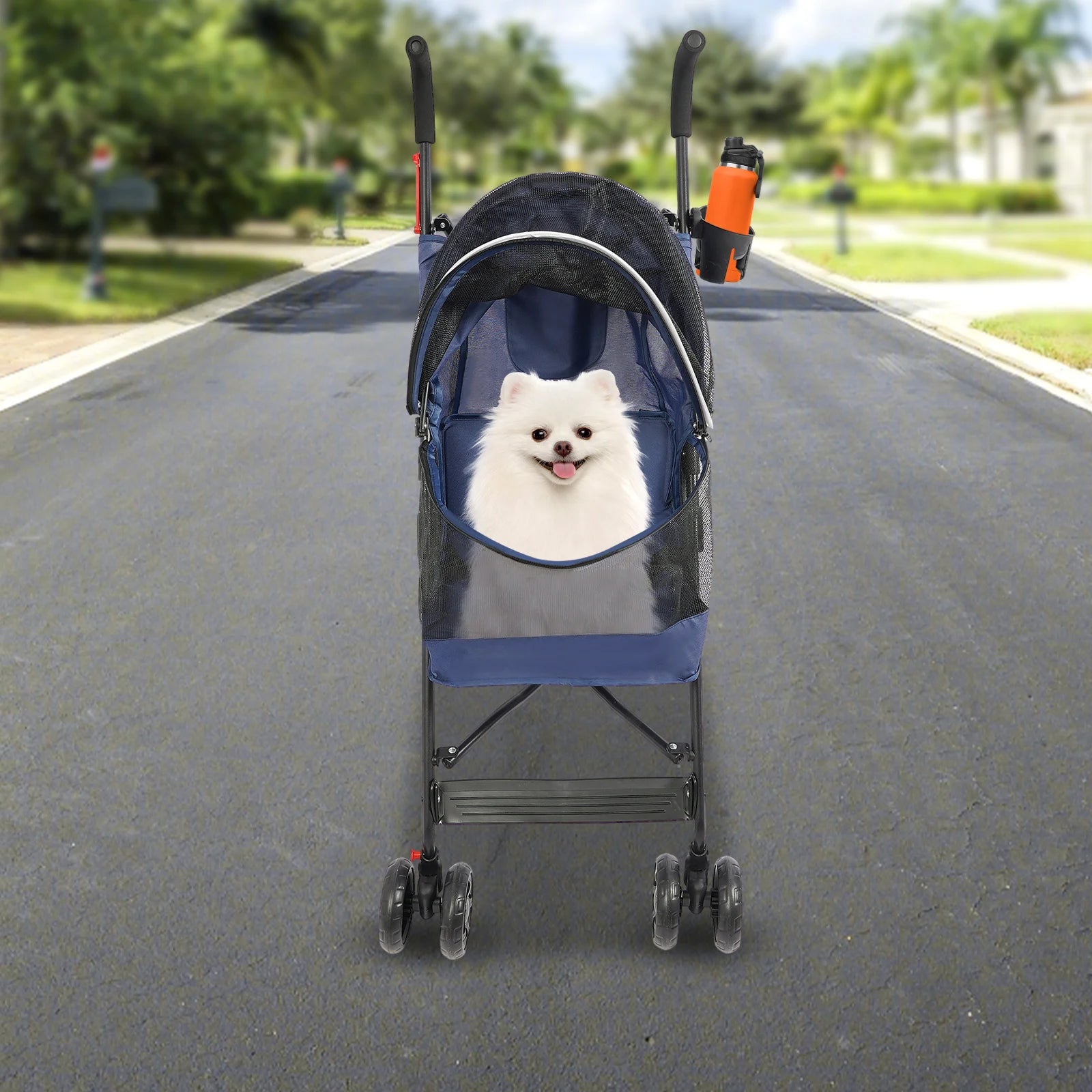 Lightweight Foldable Pet Stroller for Small Medium Dogs- Portable Travel Carrier with Cup Holder- Handle & Rear Storage Pocket