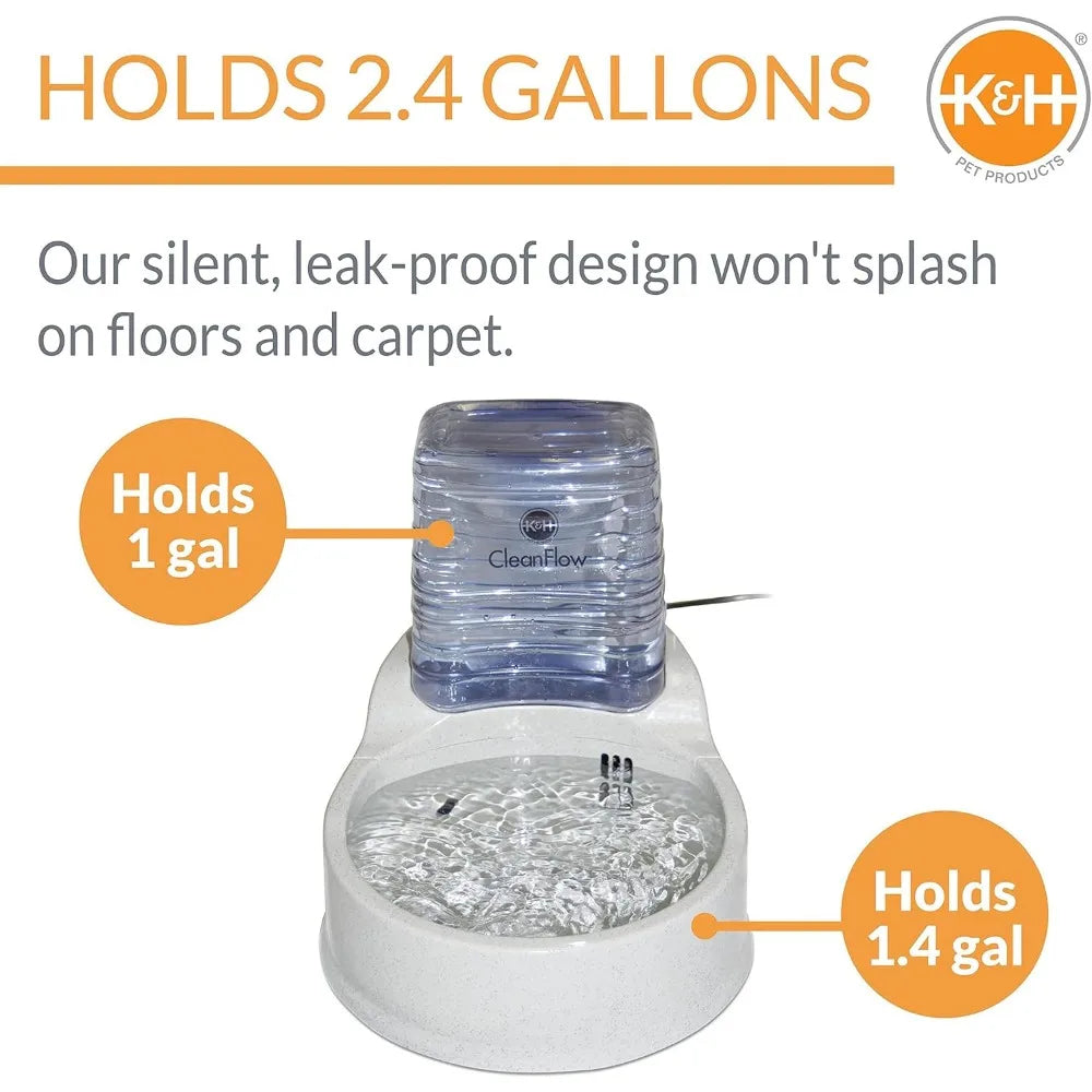 Enhance your dog's hydration with our premium granite water bowl, designed to provide clean and fresh water all day long. Key Features: **Durable Granite Construction** Made from high-quality granite material, this bowl is sturdy and resistant to scratches, ensuring long-lasting use for active pets. **Built-in Filtration System** The integrated filter helps remove impurities and odors from the water, promoting better health and taste for your dog. **Large Capacity Design**: Includes a 1.4-gallon main bowl and a 1-gallon reservoir, ideal for medium-sized dogs or multiple pets, reducing the need for frequent refills. **Easy Maintenance** The bowl features a removable filter and smooth surfaces that are simple to clean, making upkeep hassle-free. **Stable Base**: Designed with a non-slip base to prevent spills and tipping, keeping your floors dry and safe. ** Benefits** Promotes healthier drinking habits by providing filtered water that encourages pets to stay hydrated throughout the day. -Saves time with its large capacity, perfect for busy pet owners who want to ensure their dogs have constant access to water. - Enhances home aesthetics with its elegant granite finish that blends seamlessly into any decor. Usage Tips: - Replace the filter every month or as needed based on usage to maintain optimal performance. - Clean the bowl regularly with mild soap and water to ensure hygiene. This product is an excellent choice for pet owners looking to invest in a reliable and efficient watering solution that supports their dog's well-being.