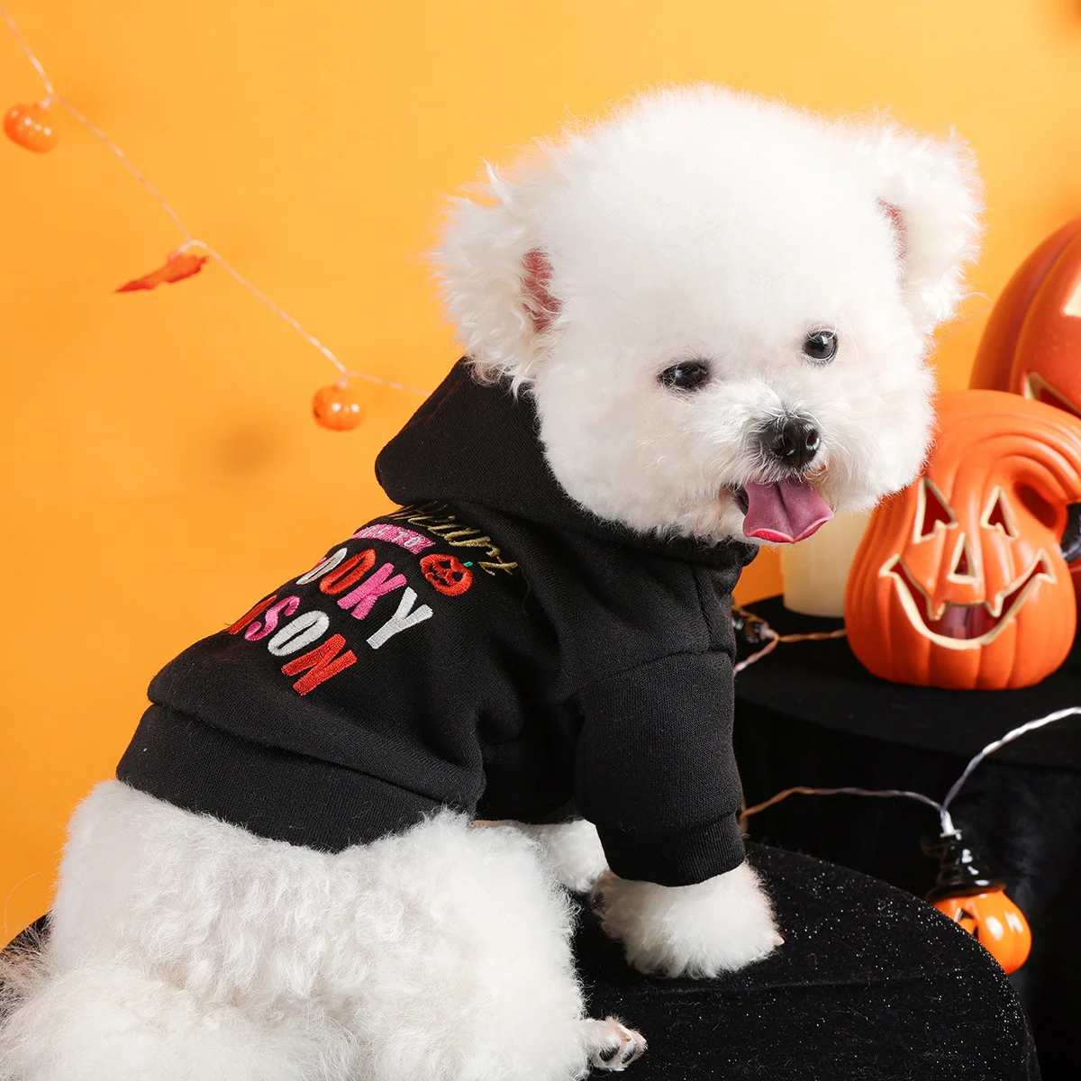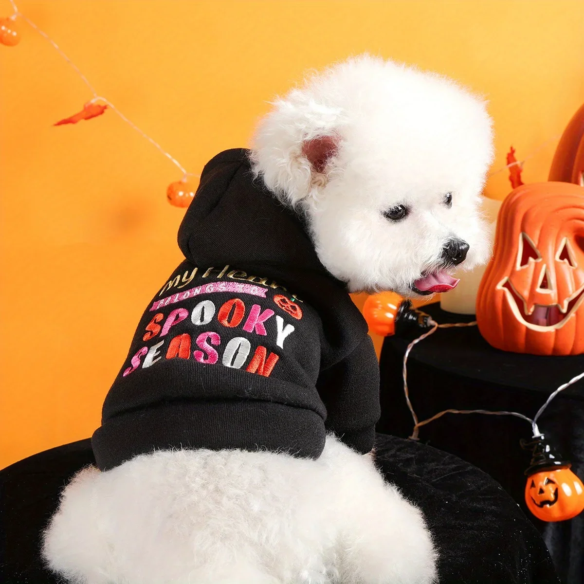 Thriller Season Halloween Sweater Pet Clothes Dog - English Embroidery- Traction Hoodie- Open Button Jacket-sizes XS-XL